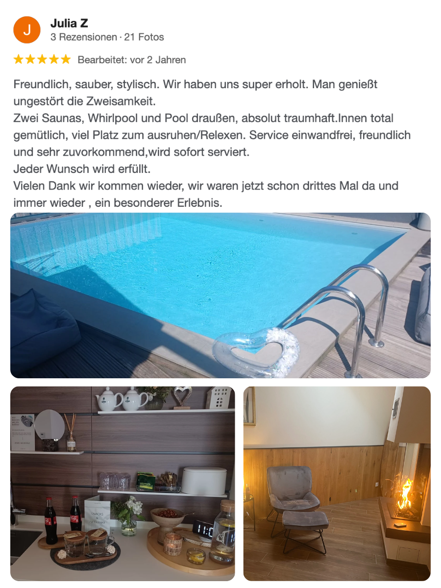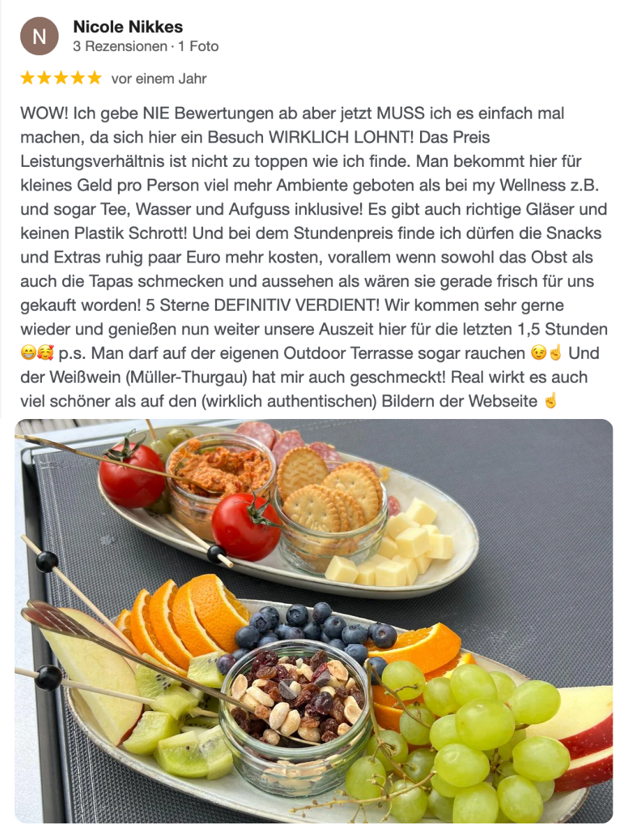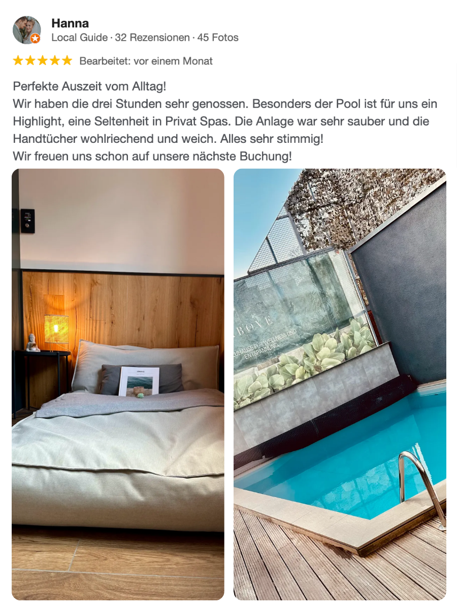 Exklusive Spa- & Eventlocation für alle, die Ruhe, Verbindung und besondere Momente suchen. Für Paare, Freund:innen & kleine Gruppen – liebevoll geführt.