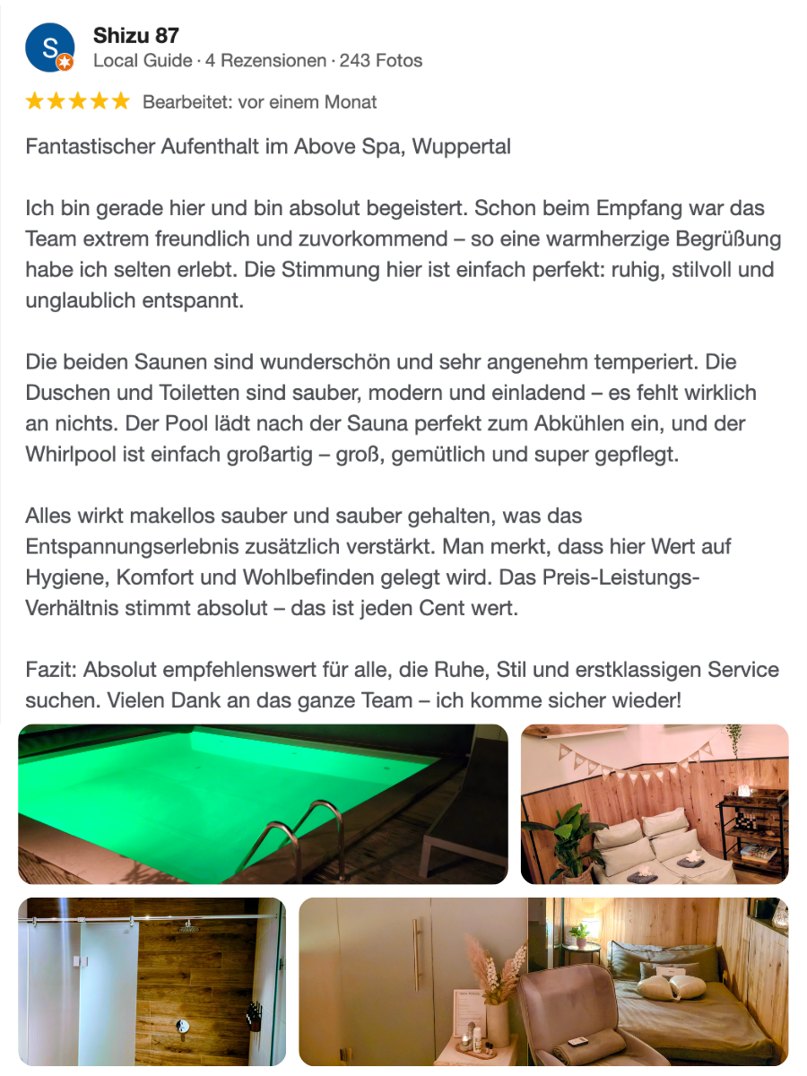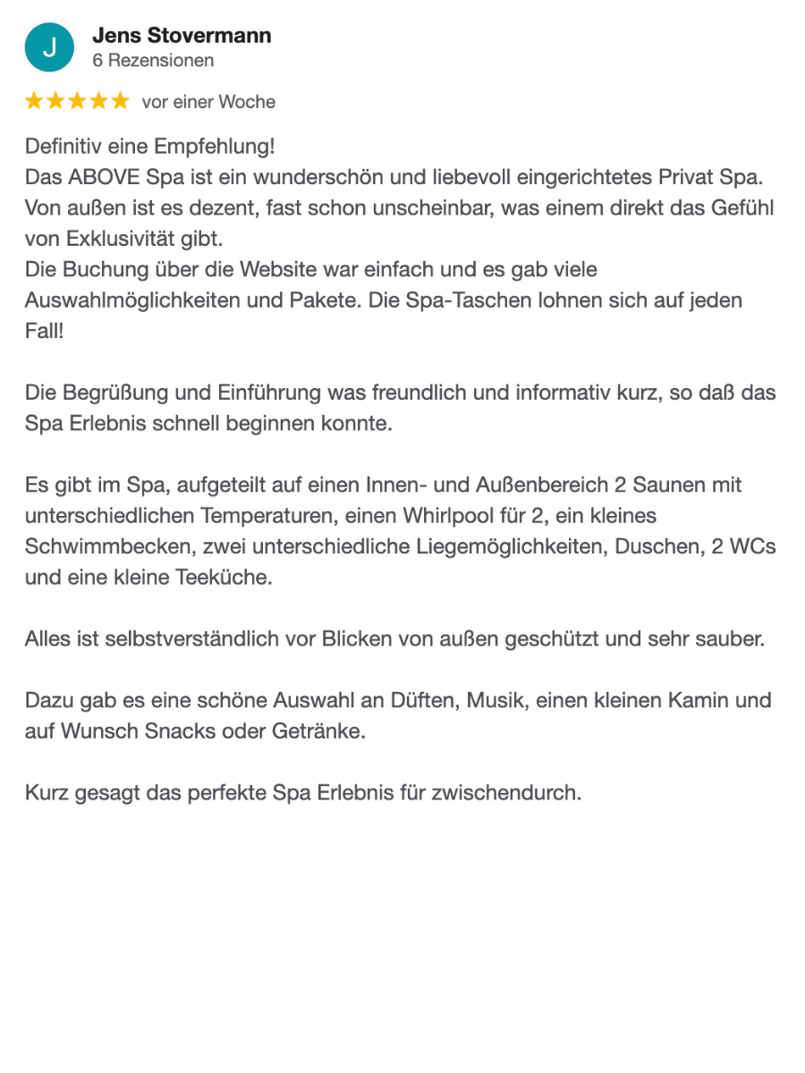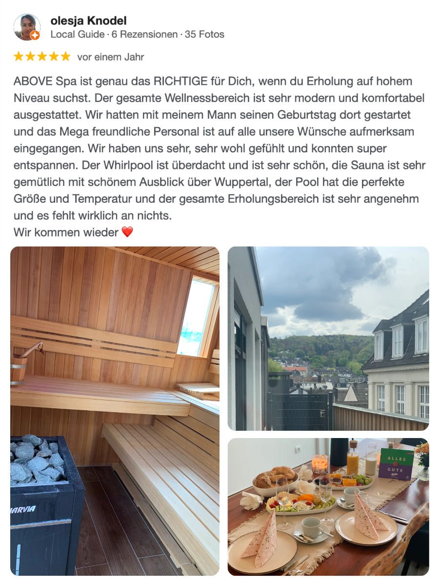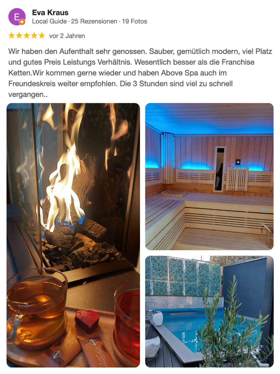 Du nutzt den gesamten Spa-Bereich für dich und deine Begleitung.